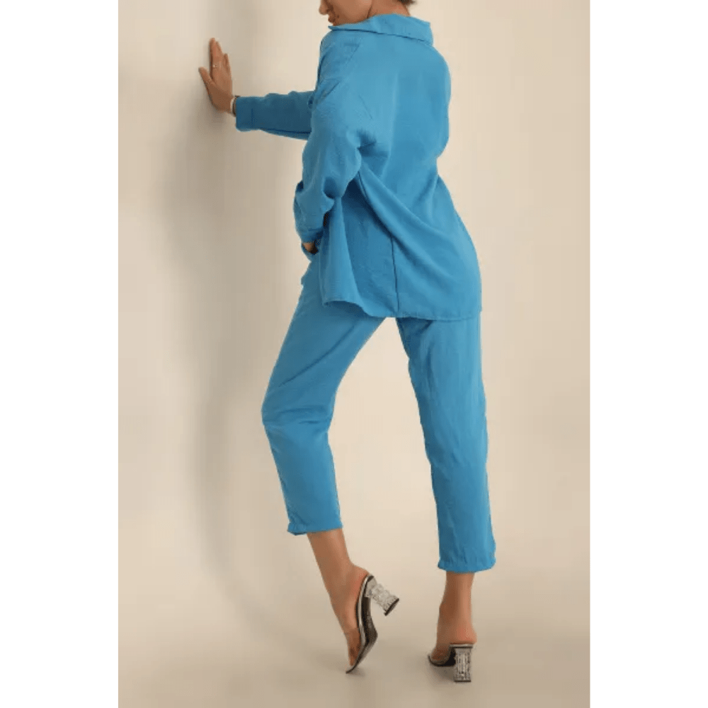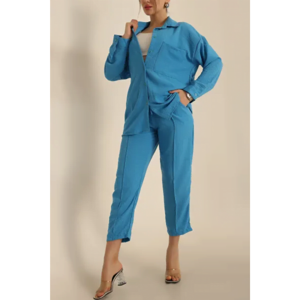 - طقم كتان بجيب علوي