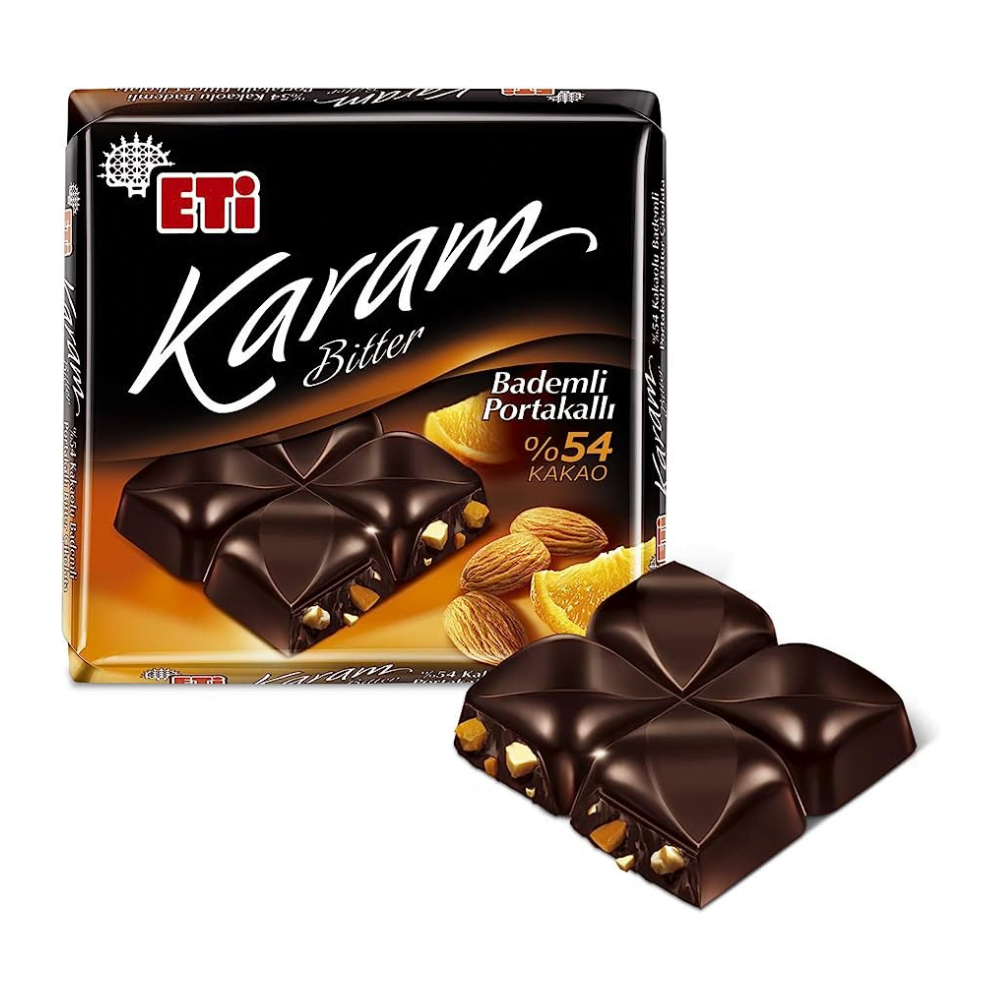 - لوح شوكولاتة داكنة من ايتي بنسبة 54% باللوز و البرتقال